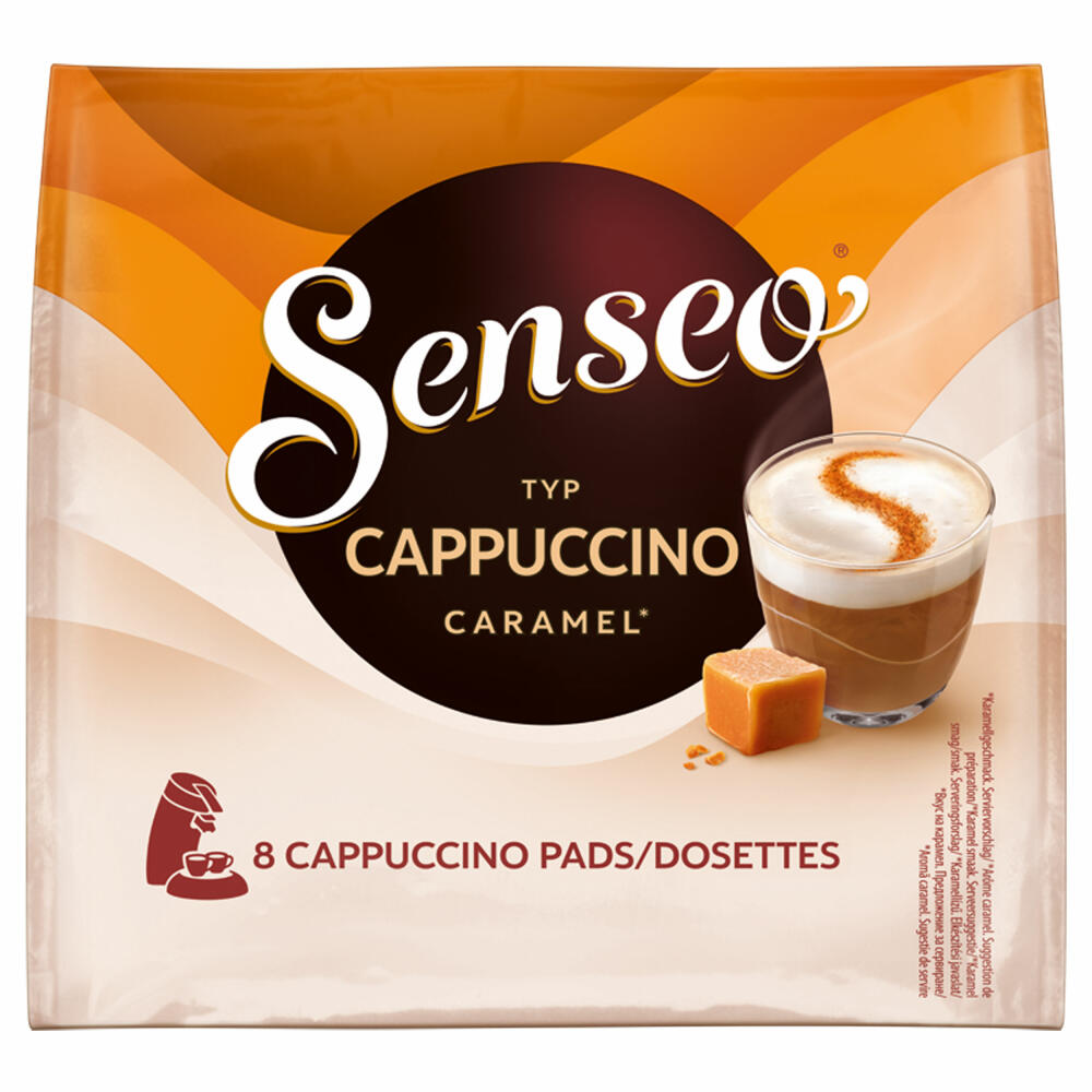 Senseo Kaffeepads Cappuccino Caramel / Karamell, Kaffee mit Karamellgeschmack, neue Rezeptur, 8 Pads