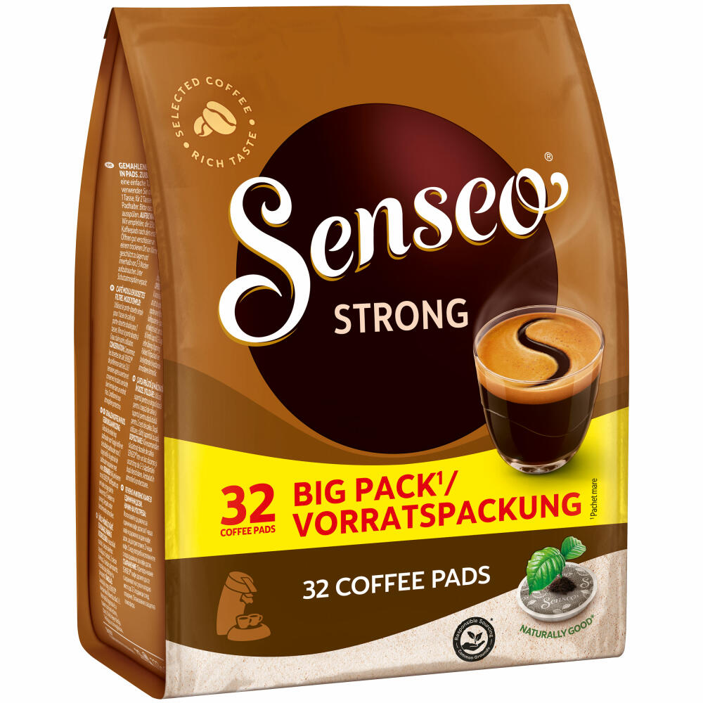 Senseo Kaffeepads Strong Vorratspackung, Kräftig, gemahlener Röstkaffee, 32 Pads