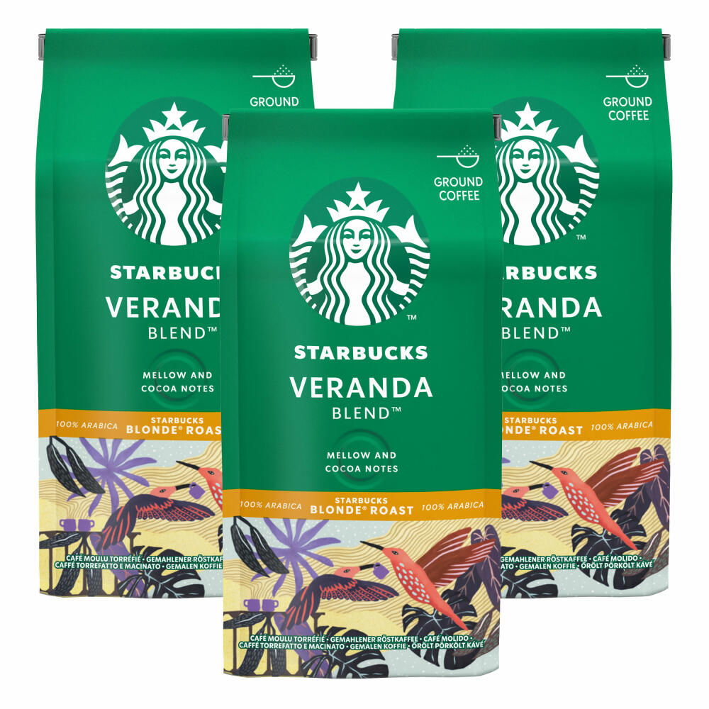 Starbucks Veranda Blend Kaffee, 3er Set, Blonde Roast, Röstkaffee, Mild mit Kakao-Noten, Gemahlen, 3 x 200 g