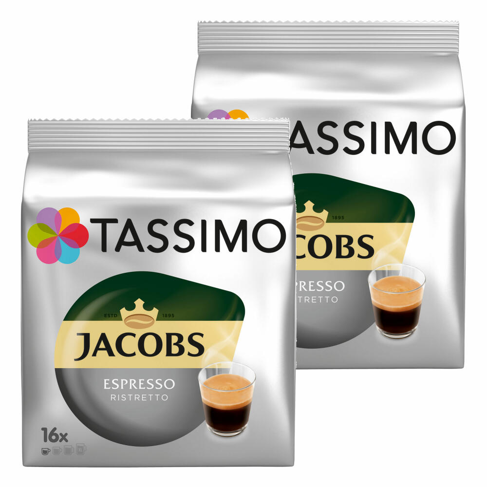 Tassimo Jacobs Espresso Ristretto, Kaffee, Kaffeekapsel, gemahlener Röstkaffee, 2er Pack, 2 x 16 T-Discs