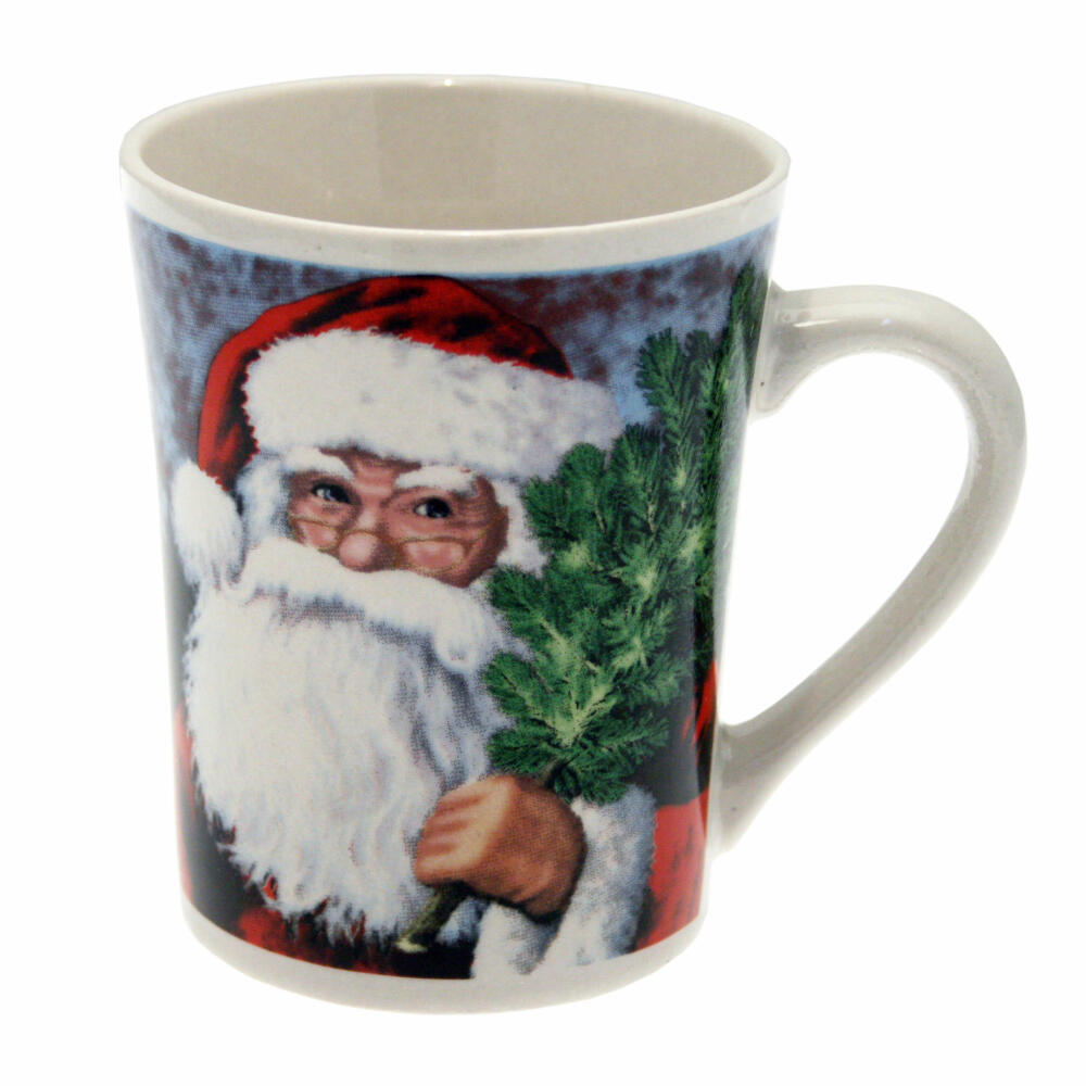 Weihnachtstasse, Weihnachtsmann mit Tannenzweig, Kaffeetasse, Becher, 350 ml